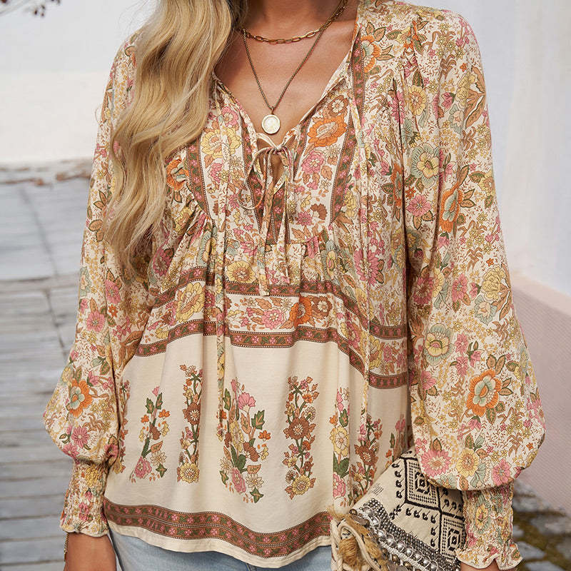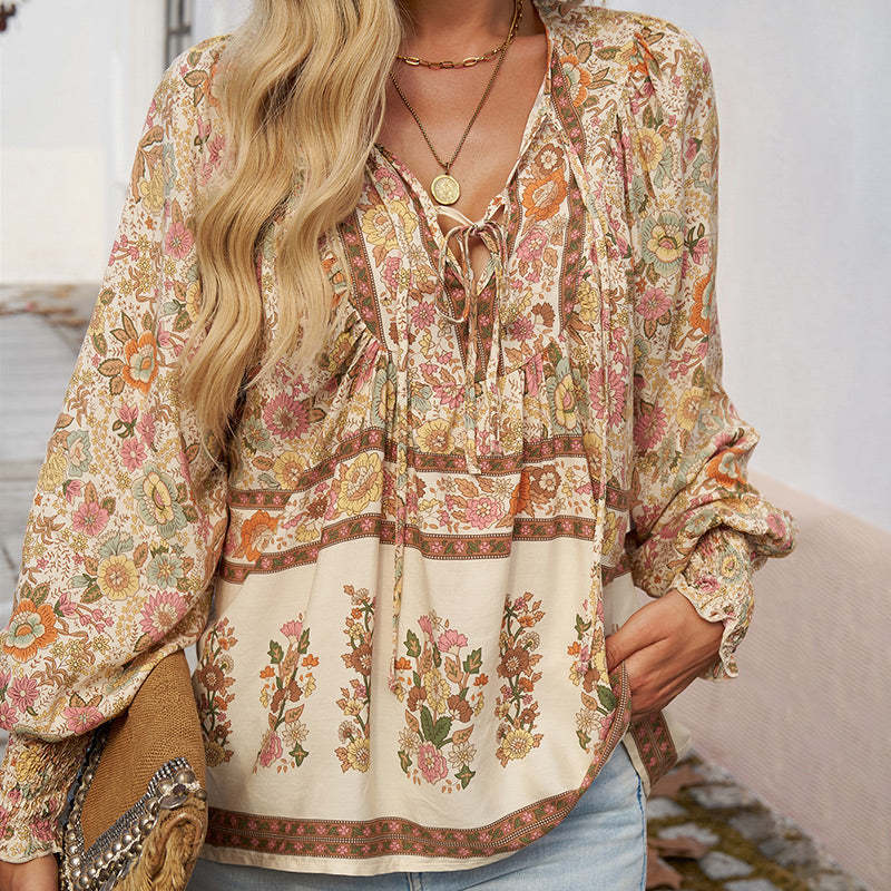 ELEGANT V-RINGNING MED KNYTDETALJER: Denna eleganta V-ringade topp har en snygg slipsdesign som kan justeras för en sofistikerad look, perfekt för både avslappnade och formella tillfällen.
