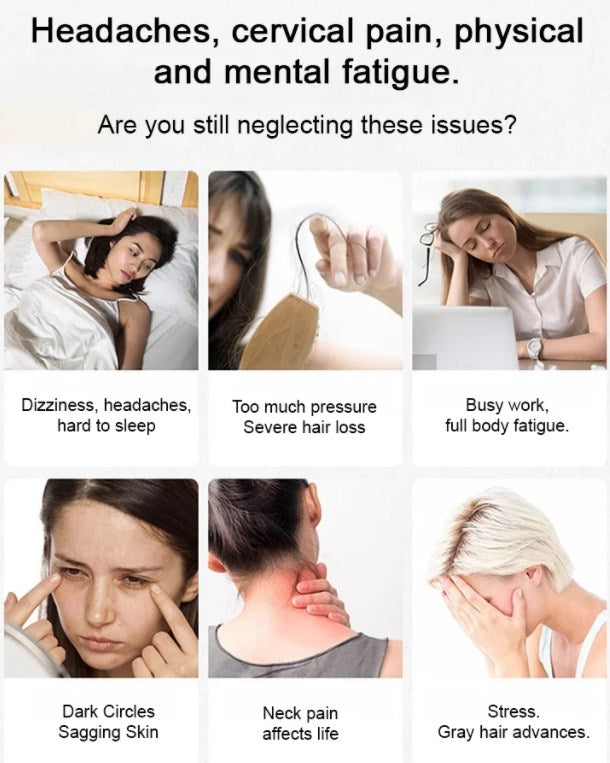 AVSLAPPNING OCH STRESSLINDRING: Regelbunden användning av kammen kan hjälpa till att lindra spänningar och stress, vilket ger en lugnande effekt samtidigt som det övergripande välbefinnandet förbättras genom de terapeutiska fördelarna med skalp- och kroppsmeridianmassage.