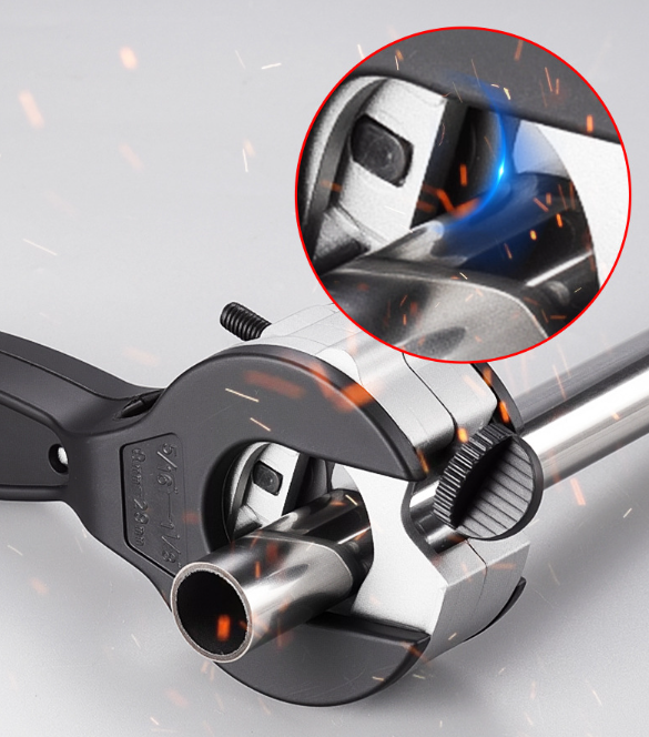 ENKEL SPÄRRMEKANISM: Spärrsystemet ger jämn, kontinuerlig skärning med minimal handkraft. Den avancerade mekanismen förhindrar att röret krossas, vilket garanterar rena, precisa skärningar med mindre trötthet vid lång, upprepad användning.