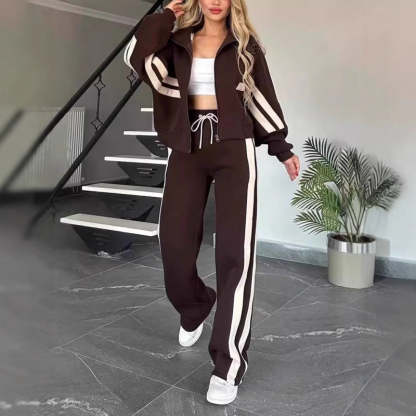 Paketet Inkluderar: 1 *2-delat set med randig jacka med dragkedja och fritidsbyxor för kvinnor