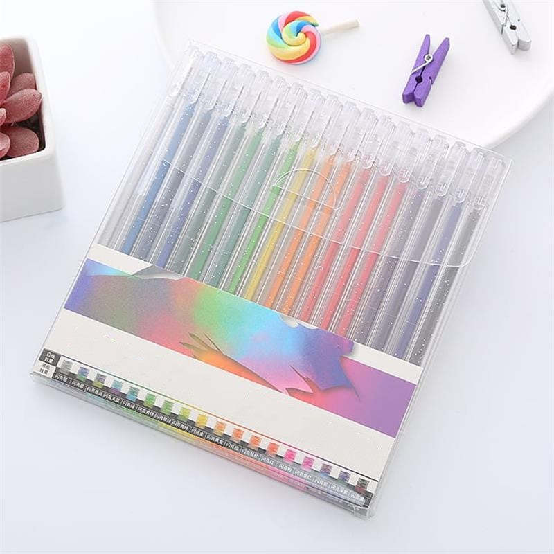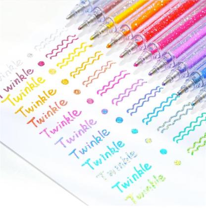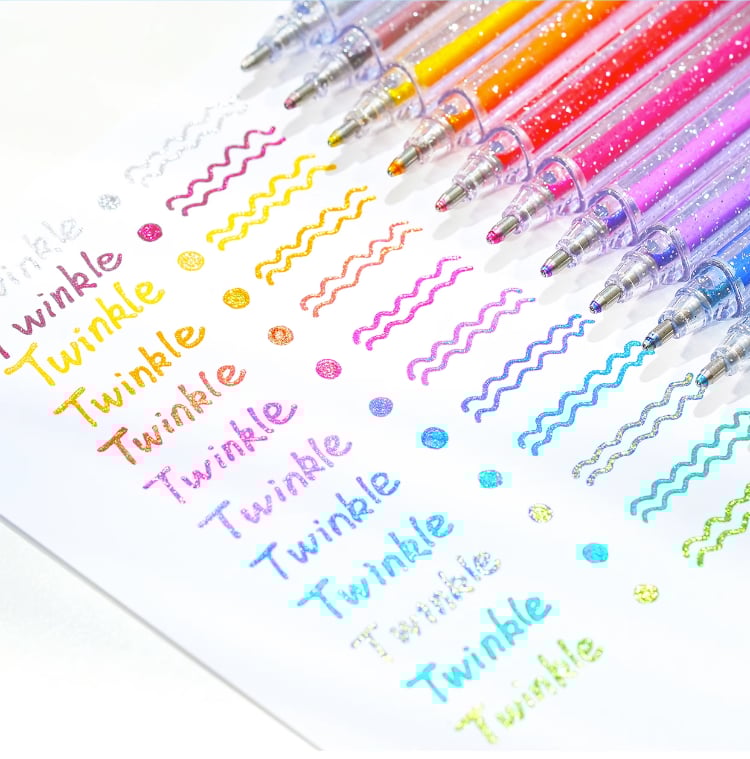 Smetar inte ut, bleknar eller hoppar över. Våra Premium Sparkly Gel Pens är perfekta för målarböcker för vuxna och barn, skolprojekt, festinbjudningar, gratulationskort, doodling, DIY-inredning och brev till vänner.