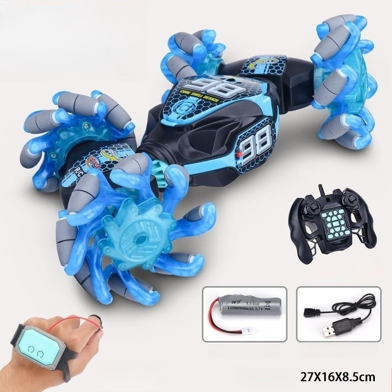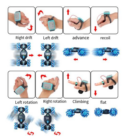 Avancerad hantering med två lägen Ta full kontroll över din stuntbil med ett innovativt armband eller fjärrkontroll, utför fantastiska stunts och njut av de fantastiska funktionerna i din nya SUV!