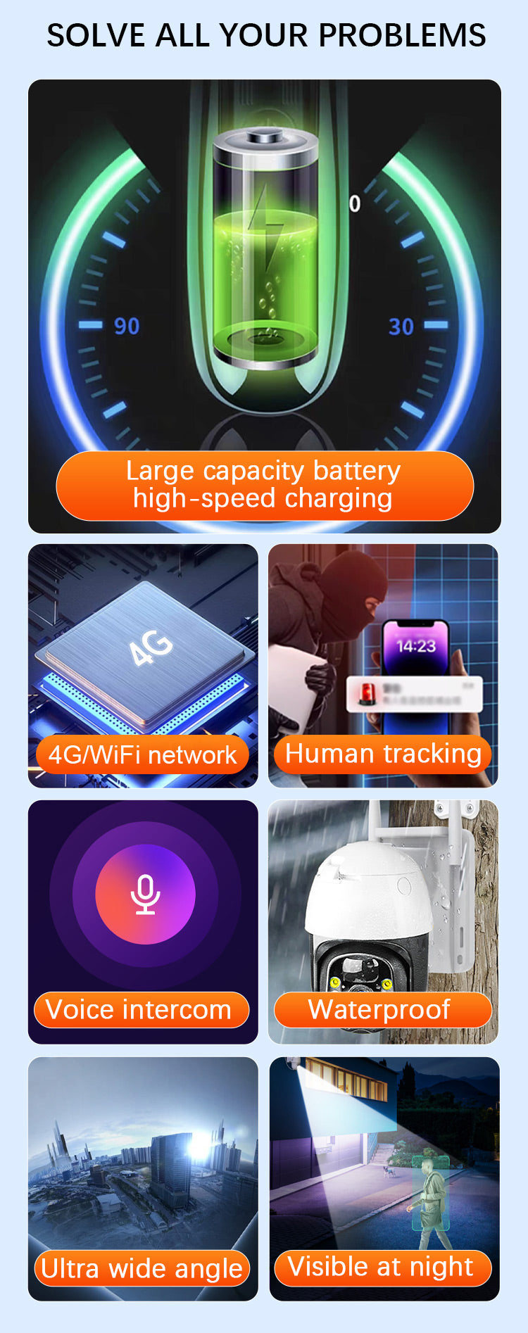 Smart trådlös solövervakningskamera Gratis frakt