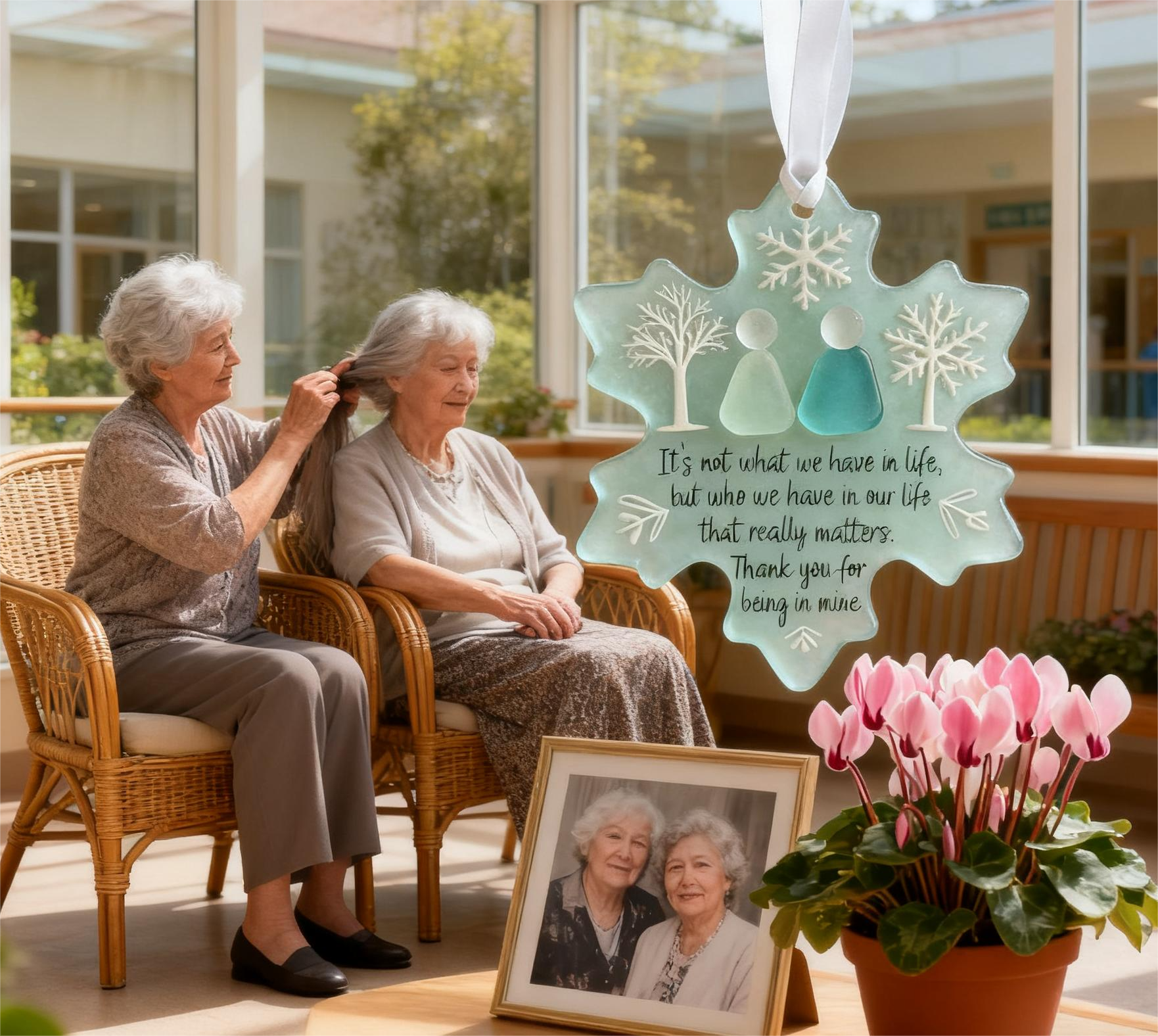 Denna snöflinga-formade prydnad fungerar som en livlig påminnelse om de band som vänner delar. När den ges som en gåva förvandlas den till ett värdefullt memento och firar skratt, stöd och oförglömliga stunder som definierar sann vänskap.💝