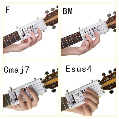 Kompakt och bärbar: Kompakt i storlek är ackordhjälperen lätt och bärbar, vilket gör det bekvämt att bära i ditt gitarrfodral eller ficka, vilket möjliggör övning var som helst, när som helst.