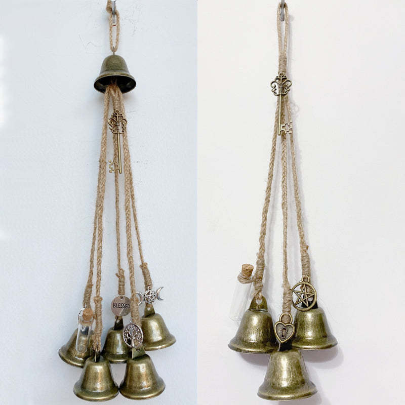 • 【Häxklockor】 Denna vackra handgjorda häxklocka har sex klockor, en livsträdscharm, en marschcharm, en välsignelsecharm, en tarotcharm, en liten trollformelflaska med skyddande svart salt och en nyckel för att skydda ditt hem och alla som bor i det.